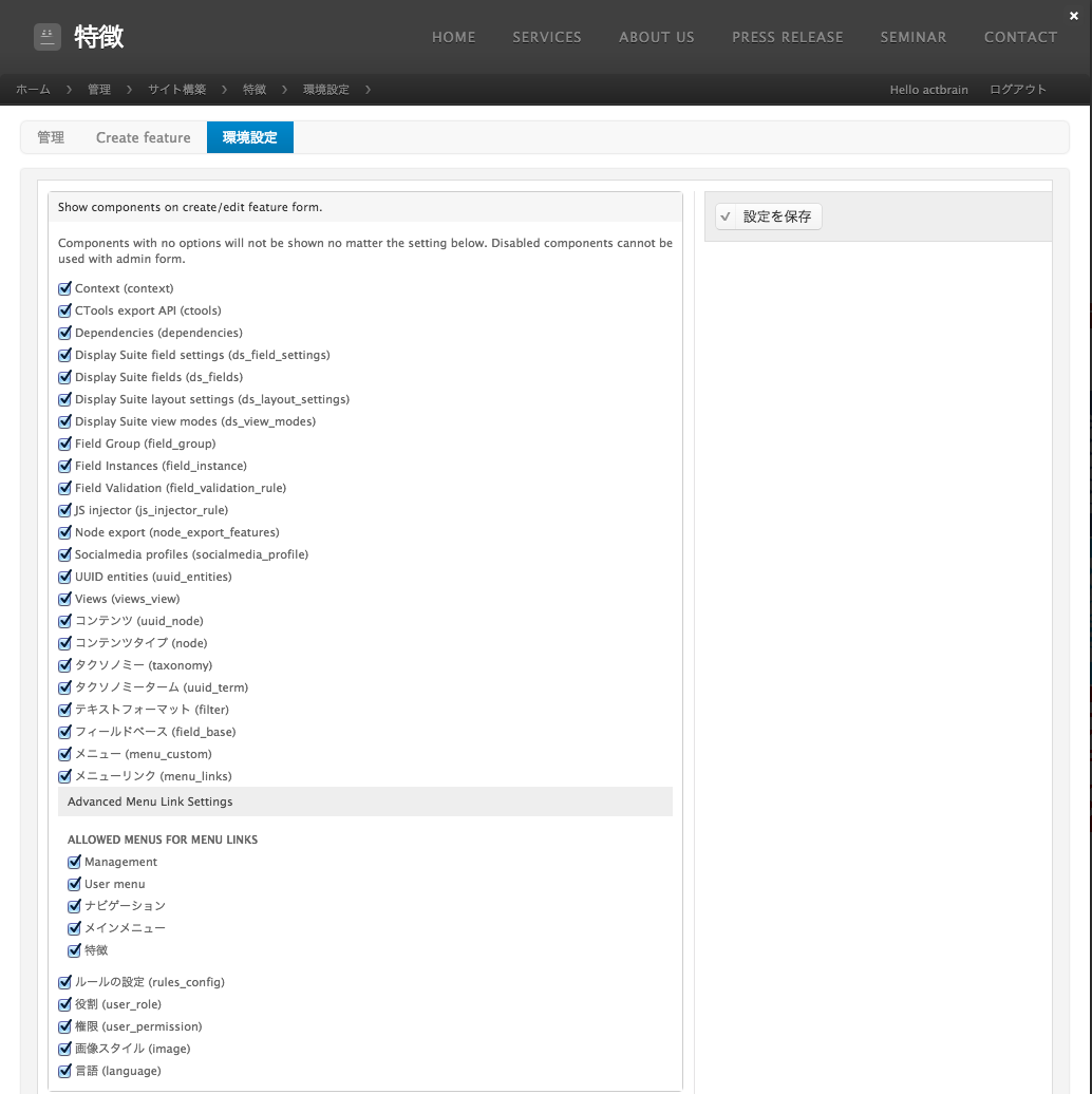 - Node Exportモジュールを有効にすることにより、開発用サイトで作成したノードを本番化する機能が追加されます。
