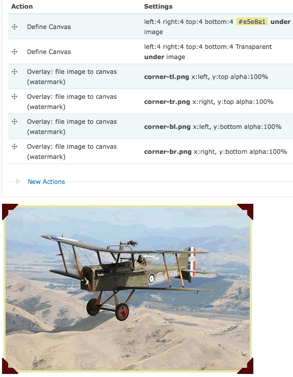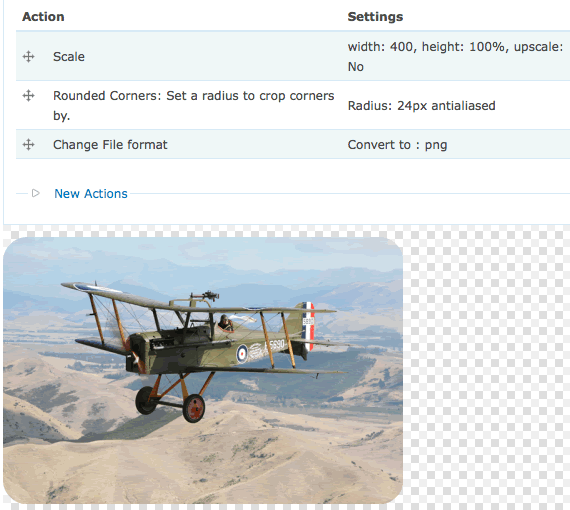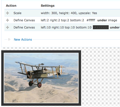 ここでは、さらにImagecache Actionsモジュールを追加することで作成できるようになる例を「画像スタイル」の設定値とともに紹介します。