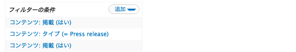 管理 › サイト構築 › 表示 › 対象Views 。フィルターの条件「追加」 › チェック&Apply