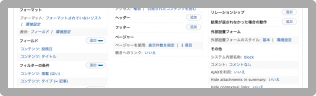 ディスプレイ/タイトルの設定/フォーマットの設定/表示形式の設定/フィールドの設定/フィルターの設定/並び順の設定/パスの設定/アクセス権限の設定/ヘッダーの設定/フッターの設定/ページャーの設定/ページャーオプションの設定/コンテキスチャルフィルターの設定/リレーションシップの設定/外部設置フォームの設定/AJAXの利用有無の設定/コンテンツページブロックの設定/クエリの設定の設定/フィールドの言語の設定/キャッシュの設定の設定/CSSクラスの設定/テーマの設定